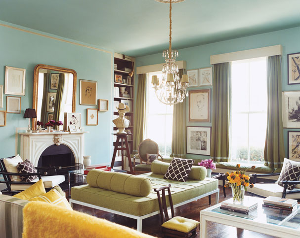 Sara's living room has also been a favorite of mine too. Its bright & cheery while still being super classy. I love it ... great inspiration for you sister's place!